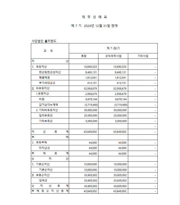 운영법인 사단법인홀리랜드 2024년 결산 공시 페이지 정보 작성자 최고관리자 작성일25-07-02 14:07 조회66회 관련링크 본문 운영법인 사단법인홀리랜드 2024년 결산 공시 목록 답변 이전글운영법인 사단법인홀리랜드 2024년 결산 공시(2) 25.07.02 다음글2025년 5월 업무추진비 집행내역 25.06.23